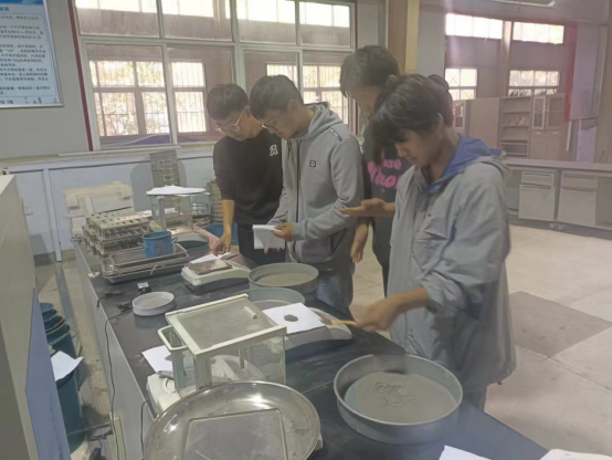 在此次实训中,学生们亲自操作负压筛析仪和天平,按照标准程序进行水泥细度试验。王辰辰教师亲身指导,耐心解答学生们的问题,并重点强调了实验过程中的注意事项和操作要点。