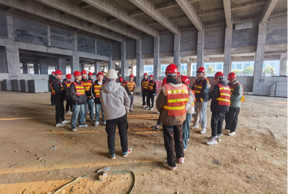 活动第一天,学生们在技术总工张经理的带领下参观了施工现场,了解了砌体工程的施工环境和流程。随后,王舜书记、王晓宇老师为学生们进行了系统的讲解,包括砌砖技术、砂浆配制和施工规范等内容。学生们积极提问,与老师们进行深入的讨论,增进专业知识的掌握。