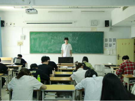 考试开始前,团总支组织部部长杨森焱有条不紊地组织学生依次在签到表上签名。同时,要求学生们上交手机,以杜绝任何可能出现的作弊行为,确保此次考试的公平公正;考试期间,学生们全神贯注,奋笔疾书。宣传部部长张皓栋、青年工作部部长王文彬在考场内巡视,维护考场秩序;最终,考试结束的铃声响起,团总支副书记胡浩宇宣布本次考试结束,每位学生依次将试卷交上,这场考试在严肃而有序的氛围中完美落幕。