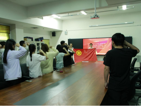 为深入学习贯彻习近平新时代中国特色社会主义思想,引导广大青年不忘初心使命、听党话、跟党走,勇担时代使命,激发团员的民族自豪感、责任感和使命感,积极以自身实际行动践行入团誓词,我院于2025年5月6日在综合楼708会议室隆重召开“沉浸式”仪式教育——重温入团誓词。