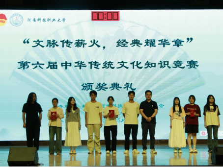 为贯彻落实党的二十大精神,落实立德树人根本任务,深化全民阅读活动,推动中华优秀传统文化创造性转化、创新性发展,激发广大学子对中华经典的热爱,推进文化自信自强,助力建设全民终身学习的学习型社会、学习型大国。共青团河南科技职业大学委员会于2025年5月14日在图书馆三楼演播厅举办“文脉传薪火,经典耀华章”第六届中华优秀传统文化知识竞赛。在比赛中,我院聂靖力、和小秀、杨敏琼学子以卓越的表现获得了本次比赛的一等奖。