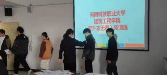 2023年专升本考试在即,为确保我院专升本考生顺利参加考试,按照《河南省普通高校招生考试“无声入场”实施办法》要求,3月29日下午,我院在马嫚婷辅导员综合楼建筑工程学院708会议室组织2023年专升本考生进行了“无声入场”模拟演练,旨在进一步加强专升本统一考试诚信理念,严肃考试纪律,教育引导我院考生诚信应考,确保我院考生都能如期参加考试。