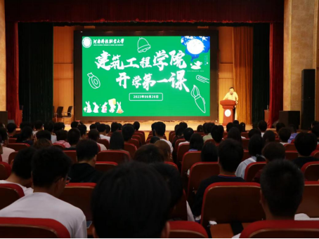 为助力新生成长,促进学生全面发展,同时为使同学们对所学专业及学校纪律有更清晰的认识,我院于2023年9月26日晚在图书馆三楼召开了建筑工程学院23级新生入学教育会。本次会议由团总支陈光耀书记主持,我院赵光磊院长、刘志刚院长、建筑工程专业教研室主任鲁海霞老师、学管办主任聂靖坤老师、王国志老师以及辅导员石松老师出席此次会议,我院23级全体同学参加此次会议。