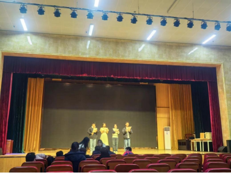 活动开始前,道具就位、灯光就位、参与人员就位,一切都在错落有序的进行着,活动现场在同学们的忙碌中显得热闹非凡。活动开始后,各节目演出人员在主持人精彩的开场下有序登台表演,在带给同学们欢乐的同时也有效促进了自我成长。一轮彩排结束后,团总支陈光耀总书记针对每个节目中所存在的问题进行一对一、手把手的精准指导,对所在问题进行反复推敲,反复打磨,力求将最好的节目状态在元旦晚会中展现出来。同学们发现自己的问题后,纷纷对现有方案进行再优化处理,争取取得更好的演出效果。