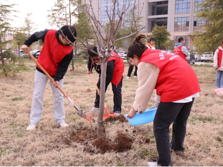 最是一年春光好,植树添绿正当时。为积极践行习近平总书记关于“绿水青山就是金山银山”的生态文明理念,进一步强化我院学生的生态保护意识,同时为共同构建更加绿色美丽的校园环境,我院于2024年3月12日开展了“植树护绿,青春同行”志愿服务活动。