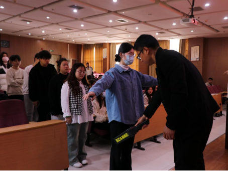 首先,王舜为考生讲述诚信考试的重要意义,他讲到,诚实守信是立身处世的第一资本,是检验个人基本道德规范的重要标尺,诚信考试,不仅能够获得知识和技能,还能够树立正确的人生观和价值观,为社会建设和发展贡献力量。其次,赵光磊对考生进行“无声入场”模拟测试,严格按照专升本考试的相关要求和流程,使用金属探测仪从身体正面至背面、从上到下的顺序进行检查,细到纽扣、拉链、戒指、牙套、铆钉等各方面的金属检测,保证”人人过关”,确保“无声”通过。接着,张振对考生文具用品进行“透明”检查,再次确定学生无无违规用具、夹带小抄现象,及时提醒学生用具情况,避免考场上惊慌失措。最后,吴琪为本次大会作总结讲话,她强调,只有付出辛勤的汗水,才能获得丰富的回报。希望每一位考生都能以诚信为准则,坚定信念,保持诚信,实事求是,积极备考,把握机遇,用实际行动赢得未来的成功。