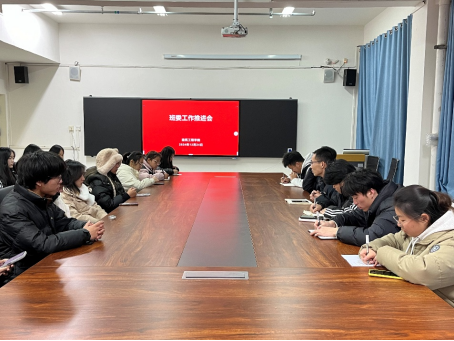为提升学生干部团队的效能,增强班级的凝聚力和向心力,我院于2024年12月24日在综合楼708会议室召开了班委工作推进会。本次会议由建筑工程学院团总支书记陈光耀主持召开,2023级建筑工程专业全体班委参加此次会议。