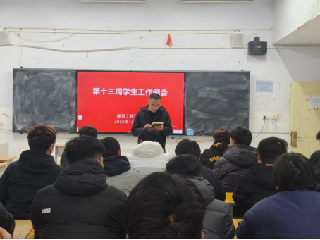 为强化学生安全意识,切实规范日常管理,营造安全有序、积极向上的校园环境,我院于2025年12月1日在408教室开展第十三周学生工作例会。本次会议由辅导员陈光耀主持,2025级专科建筑工程技术1班全体同学共同参与本次会议。