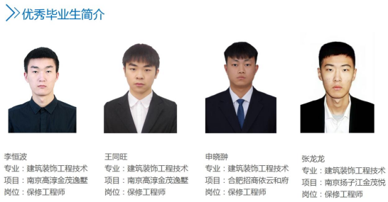 通过了解得知,此届优秀毕业生为2021届建筑装饰工程技术毕业生,共计四名优秀毕业生。在2020年11月初初次接触苏州广德浩建筑工程管理咨询有限公司并统一面试,到如今已经成为该公司的储备人才,每位毕业生经过自己的努力,在自己的工作中奋勇直前,找到自己明确的奋斗目标。