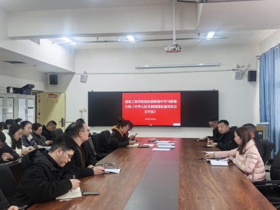为提升教师规范使用国家通用语言文字的能力,2025年12月30日,建筑工程学院组织全体教师在学院会议室开展新修订《中华人民共和国国家通用语言文字法》专题学习会。