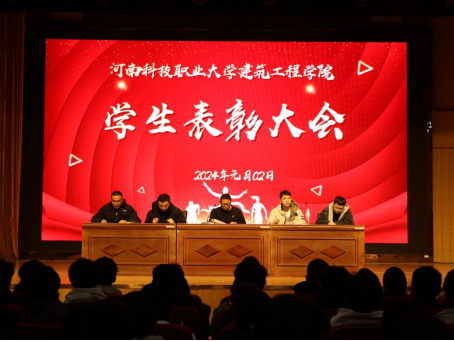 为表彰先进,树立典范,对在本学期表现突出的集体和个人进行表彰;同时为加强本院学风建设,营造良好的学期末复习氛围,我院于2024年1月2日在图书馆三楼召开了河南科技职业大学建筑工程学院2023-2024学年第一学期学生工作表彰大会及诚信考试动员动员大会,出席本次会议的领导有建筑工程学院副院长赵光磊、副院长刘志刚,教务办公室主任张志博,学生管理办公室主任张振,本次会议由团总支书记陈光耀主持。