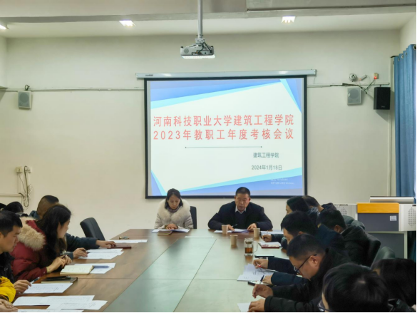 为全面考核教职工的综合表现,进一步提升教育教学质量,促进学院的持续发展。2024年1月18日,建筑工程学院在综合楼708召开河南科技职业大学建筑工程学院2023年教职工年度考核会议。学工部部长尚德山、科技处处长苏宵等领导及建筑工程学院全体教职员工参加会议,大会由王舜主持。