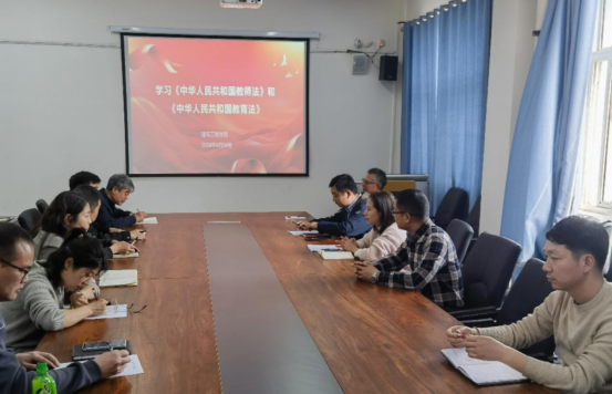 2024年4月11日,建筑工程学院组织全体教师在综合楼708深入学习了《中华人民共和国教育法》和《中华人民共和国教师法》。