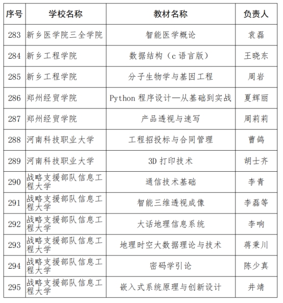 具体河南省本科高校新工科新形态教材拟立项建设名单见附件。