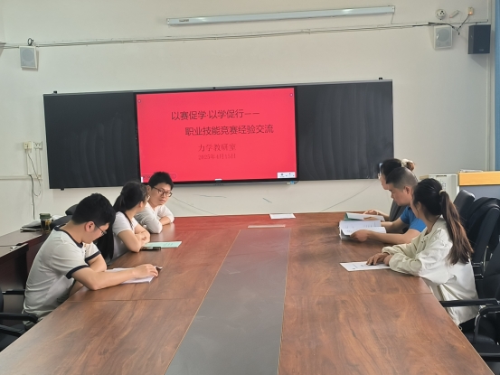 2025年4月15日,力学教研室在综合楼708会议室举办“以赛促学·以学促行”职业技能竞赛经验交流会,教研室主任郭加加主持,张亚涛、陈丹丹、袁威、张攀龙、王晓宇等教师参会。