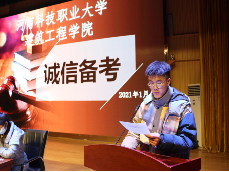 大会上,刘志刚院长发表讲话,提出诚信是人立足之本、是人一生当中最基本的道德观念、是中华民族传统美德,无论何时同学们都应该继承和发扬优秀美德以成就更好的自我。他强调,考试是一种严格的知识水平鉴定方法,是对一段时间学习成果的检验,同学们必须要把诚信放在第一位,彰显出诚实守信的新时代大学生形象。随后,代煜老师宣读了诚信考试要求规范,宣读的内容使在座的同学们对诚信考试有了更深刻的了解。会议最后,王舜书记再次强调“言必诚信,行必忠正”明确诚信是为人之根本。也在此对同学们表以衷心的祝愿,祝愿同学们在期末考试中取得优异的成绩。