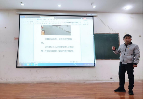 王舜书记将现实生活与党的理论结合起来,以最近邻国缅甸北部动乱的时事新闻为切入点,将我国边境城市瑞丽的歌舞升平与仅有一江之隔炮火连天的缅甸做对比,一边是老百姓饭后悠哉散步的景象,一边是子弹纷飞的血腥战场。窄窄的江水,似乎隔开了天堂与地狱。王舜书记讲到自1979年对越反击战以来,我们已经有两代人不曾经历战争,但世界上并非所有国家都能像我们一样享受和平,我们幸福生活的背后,是强大的祖国和无私奉献的党。正是一代代共产党人的前赴后继,舍弃小我,成全大我,才有了今日的中国。