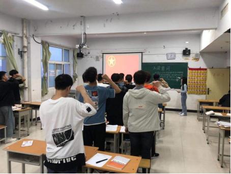 党的历史是最生动、最有说服力的,19级工程造价一班专科团支部团支书向班级团员介绍了本次主题团日活动的意义后,由团员代表带领团员重温了入团誓词,提出青年学生应当学党史、感党恩、跟党走、增党光,忠心于党,忠诚于国,以昂扬姿态奋力做好当下事,于未来在实现中华民族伟大复兴为党绽放光彩。
