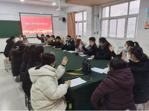 2021年12月24日,建筑工程学院党支部在综合楼708教室召开了党支部大会,学院全体党员同志参加了本次会议。会议由支部书记王舜主持,本次会议主要议程为对朱家正、周泰宇、张家赫三名预备党员发展为中共正式党员进行讨论和表决。