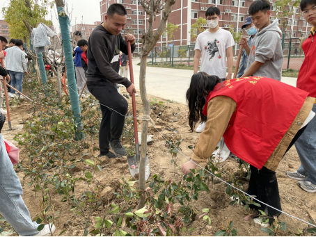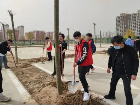 挖坑、落苗、填土、浇水……活动中,同学们分工协作、干劲儿十足,劳动繁忙有序,气氛活泼热烈。大家你一锹,我一铲,纷纷抢着干,力争多种一棵树、多植一片绿,早春的天气依旧寒冷,但不少人额头上还是冒出细密的汗珠,现场呈现出一片热火朝天的劳动场面。大家都在用自己的行动为河南科技职业大学的天更蓝、山更青、水更绿贡献一份力量。