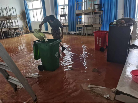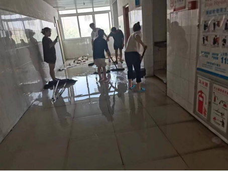 6月8日早间,我校综合楼四楼403室中央空调水管突然破裂,空调循环用水顺流而下,导致整个四楼地面积水严重。学院领导与校保卫处在得知这一情况后,立即采取措施,迅速组织在校人员前往事发地点进行抢修清扫。