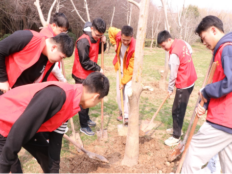 植树现场,志愿者们积极踊跃,干劲十足,大家挥锹铲土、扶树填坑、浇水正苗,两人一组、分工合作,热情高涨、配合默契,每道工序都认真细致、有条不紊,到处一片热火朝天的景象。志愿者们纷纷发扬不怕苦、不怕累的精神,尽管志愿者们头上出汗了,衣服弄脏了,但是看到一排排亭亭玉立的新树将会在明媚的春光中展现勃勃生机,为初春添上丝丝活力而感到自豪。