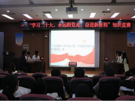 筚路蓝缕,风雨兼程。值此全面贯彻党的二十大精神的开局之年,学思想,强党性,重实践,建新功,河南科技职业大学“学习二十大,永远跟党走,奋进新征程”知识竞赛决赛于5月18日晚上顺利举行。其中以张荣泽、陈杰、燕依瑞同学组成的杰出队代表我院在此次知识竞赛中荣获季军。