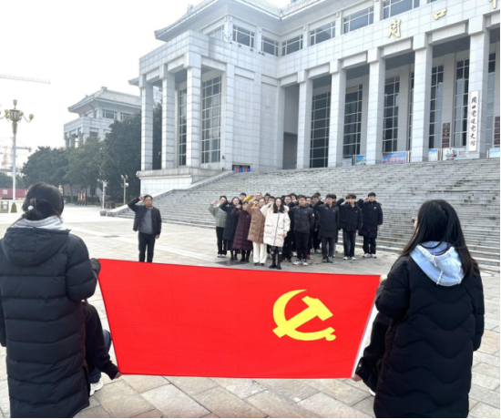 在周口市博物馆门前,面对鲜红的党旗,全体党员高举右拳,庄严地重温入党誓词:“我志愿加入中国共产觉,拥护党的纲领,遵守党的章程,履行党员义务……”他们铿锵有力的声音如同一股洪流,滚滚向前,凝聚着对党的忠诚和为共产主义事业奋斗终生的坚定决心。