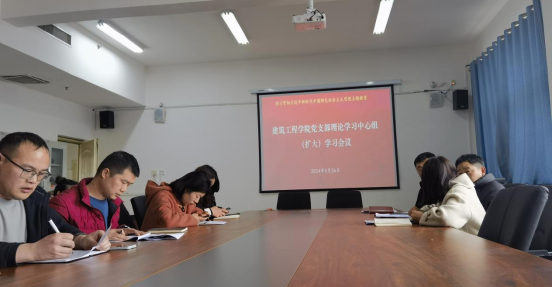 2024年3月26日,建筑工程学院党总支理论学习中心组在综合楼708会议室召开集体学习会议,深入学习《政府工作报告》、《习近平总书记参加江苏代表团审议时的重要讲话精神》、《习近平总书记看望参加政协会议的民革科技界环境资源界委员时的重要讲话精神》、《中共中央办公厅关于巩固拓展学习贯彻习近平新时代中国特色社会主义思想主题教育成果的意见》。建筑工程学院全体党员教师参加会议,会议由建筑工程学院党支部书记王舜主持。