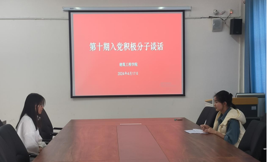 2024年4月17日,建筑工程学院成功开展了第十次入党积极分子谈话活动。此次活动旨在深入了解入党积极分子的思想动态和政治觉悟,加强对他们的培养和教育。