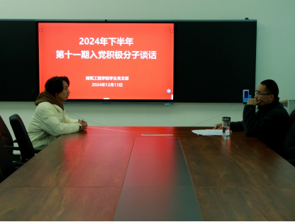 为深化党的建设,优化党员发展品质,保障党员群体的先进性与纯洁性,我院于2024年12月13日下午举办2024年第十一期入党积极分子谈话活动。本次活动由建筑工程学院学生党支部书记陈光耀主持,教职工党支部、学生党支部代表及全体第十一期入党积极分子共同参与。