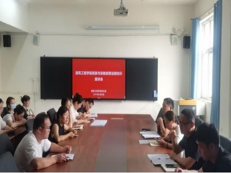 为深入贯彻落实党的民族宗教工作方针政策,铸牢中华民族共同体意识,建筑工程学院于2025年6月9日下午在综合楼708会议室召开建筑工程学院民族与宗教政策法规知识座谈会。本次会议由建筑工程学院党总支书记王舜主持,建筑工程学院全体教师党员参与本次会议。