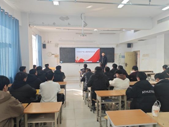 2025年12月2日,河南科技职业大学建筑工程学院在综合楼408教室举办“中国共产党人精神谱系”专题宣讲会。学院教职工支部书记、副院长刘志刚结合工程领域实践经验,为2025级建筑工程本科、工程造价本科共270名学生带来生动宣讲。