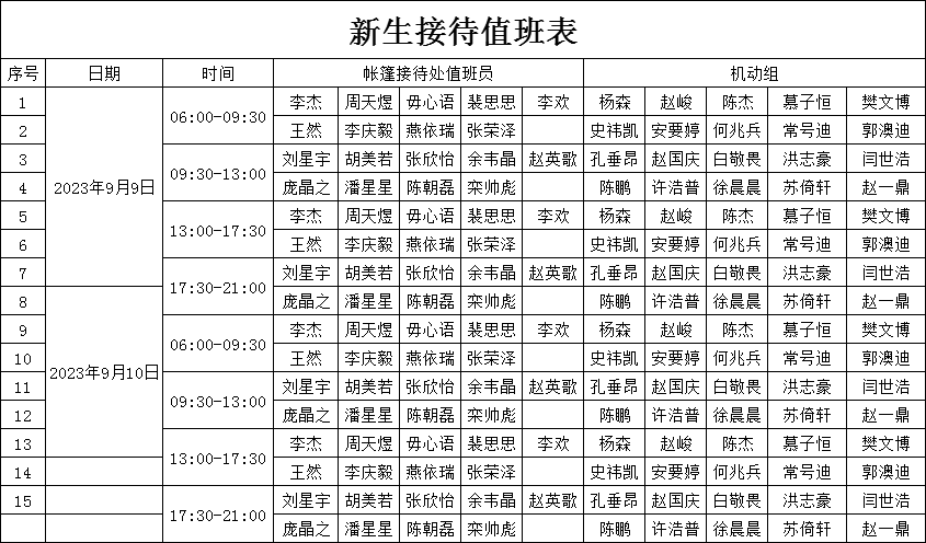 值班人员时间安排(学生校内)