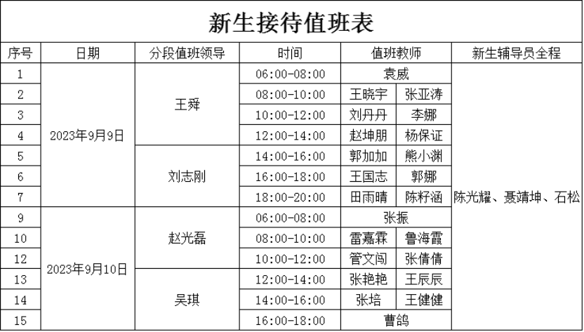2.学院全体教职工在9月8日之后,由学院统一安排继续负责新生接待工作。新生报到结束后,要在军训期间组织好新生入学教育;